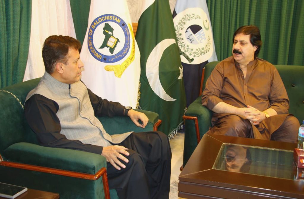 Senator Manzoor Ahmed Kakar, a member of the Senate of Pakistan, visited the University of Balochistan and held a meeting with the Vice Chancellor, Professor Dr. Zahoor Ahmed Bazai.During the meeting, key issues were discussed including the promotion of higher education in Balochistan, academic development of the university, potential federal-level support for research projects, and infrastructure enhancement. The Vice Chancellor briefed the Senator on the university’s recent achievements, digital initiatives, ongoing academic programs, and future goals.Senator Manzoor Kakar praised the leadership and faculty of the university for their contributions to education and reiterated his commitment to fully support the University of Balochistan through policy-making and resource allocation at the federal level.Professor Dr. Zahoor Ahmed Bazai whythanked the Senator and emphasized that collaboration between universities and legislative bodies plays a crucial role in improving educational standards.